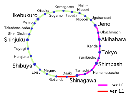 In this version, the construction of railway is completed from Shinagawa to Gotanda. Further, I put one train of CW direction between Osaki and Shinagawa.