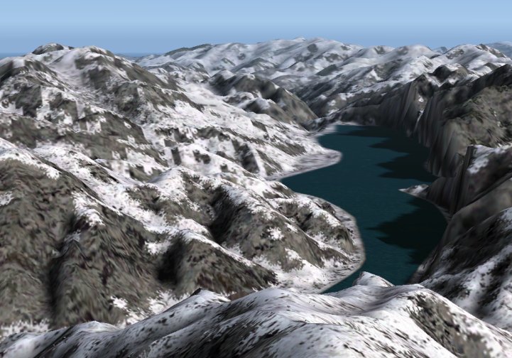 どうでしょうか。やはり、「微妙に甘いが遠景は綺麗」というのが総括でしょうか。なお、山の形が微妙に違うのは、FS2002とFS2004で湖の位置が微妙に異なっているからだと思われます。このようなデフォルトシーナリーがバージョンにより微妙に異なるというのは、FS98あたりからよくあった事です。(