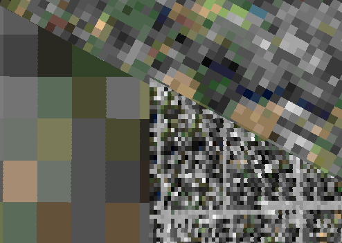 というわけで、結局横浜シーナリーでは、1ピクセルが約6mの解像度としました。これは、トワイライト東京シーナリーの都心部の解像度よりも細かいが、個々の家々の情報まではわからない程度の解像度で、住宅地でも太目の道路・小さな児童遊園・小学校の建物と校庭などは判別できるといった、扱いやすくかつ興味もそそられる程度の解像度ではないかと考えています。