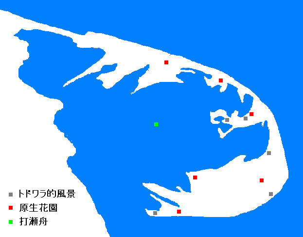 | 荒涼たるトドワラ。一部で熱烈なファンを持つ、トドワラの風景を作りました。さらに、美しい花が咲き乱れる原生花園や、初夏の風物詩として有名な打瀬舟もあります。(FS98用です。) 花と舟は夏のみ現れます。花のあるところは、春は若葉が茂ります。 本シーナリーは、トワイライトエクスプレスの北海道シーナリーと一緒に使用すると効果的です。(マイクロソフト純正シーナリーでも使用できますが、座標などはTW版にあわせてあります。) |