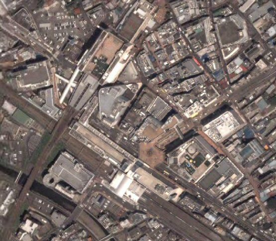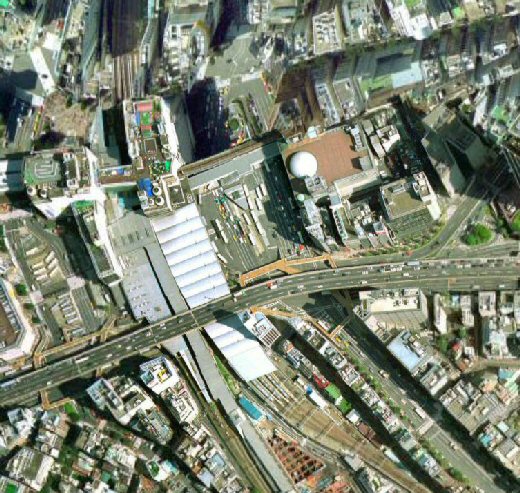 いきなりローカルになりますが、JRと小田急の町田駅です。横浜線の改札を出た歩道橋の広場あたりでも、車が1台1台わかる解像度です。郊外の町田なのにこの解像度とはすごいです。
