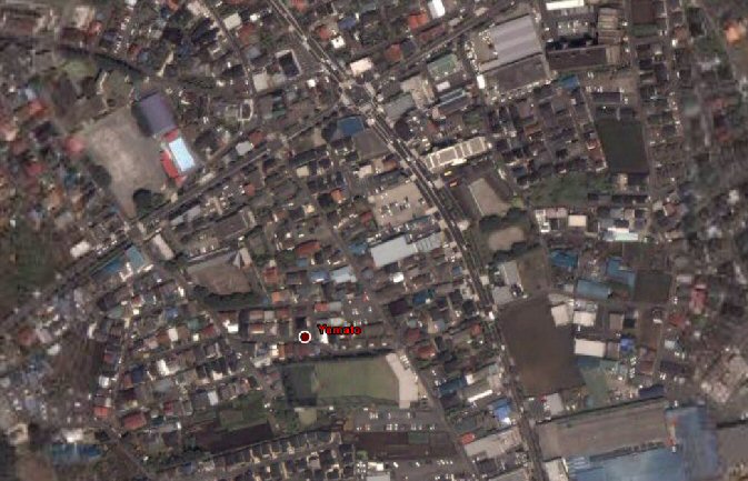 ちょっと見にくいですが、中央下の Yamato と表示されている場所なのですが、本当は町田市鶴間です。このように場所の表記は大分適当です。中央上部が、町田街道の町谷原です。