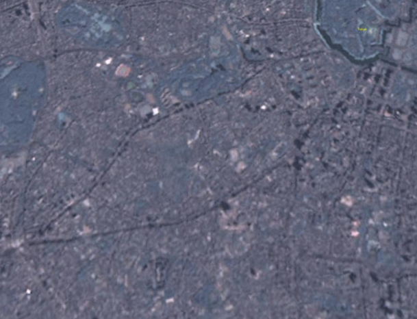 使う衛星を変えてみました。上の写真より色は悪いですが、解像度は少々良いです。このように衛星写真の解像度次第で、将来的には可能性はありと思われます。