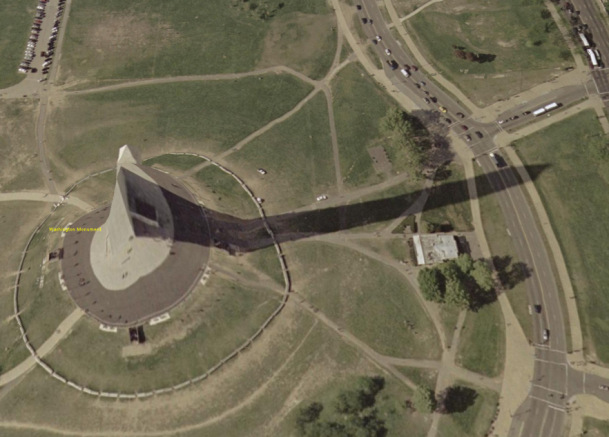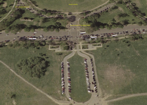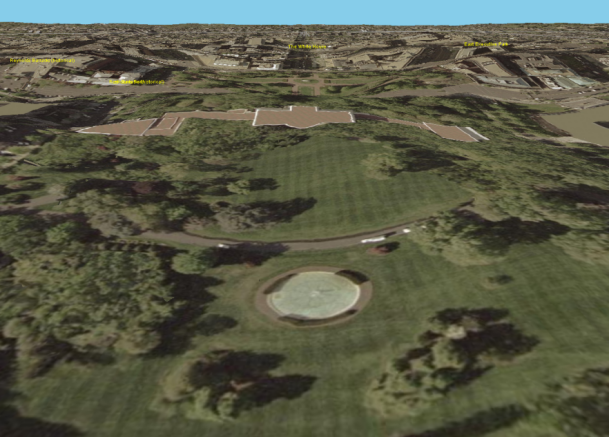 これはワシントン・モニュメントですが、斜めから見てみたので高度表現がおかしくなっています。これはTerrainMeshデータだけがあり、3Dオブジェクトがないからです。しかし解像度はすばらしく、自動車が一台一台識別できます。