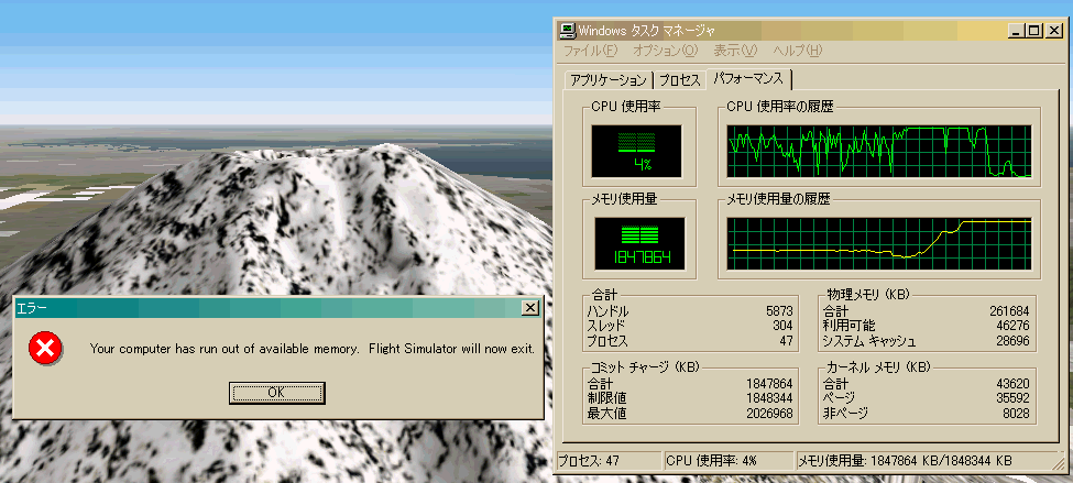 jterrainのシーナリー だいぶ美しいです。村上さんの fuji.exe を行わないとこのように見えます。