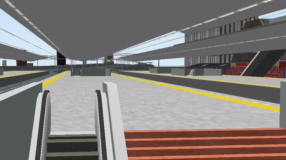 The escalator and fluorescent lights for Tokaido Shinkansen line platform (v0.25X).