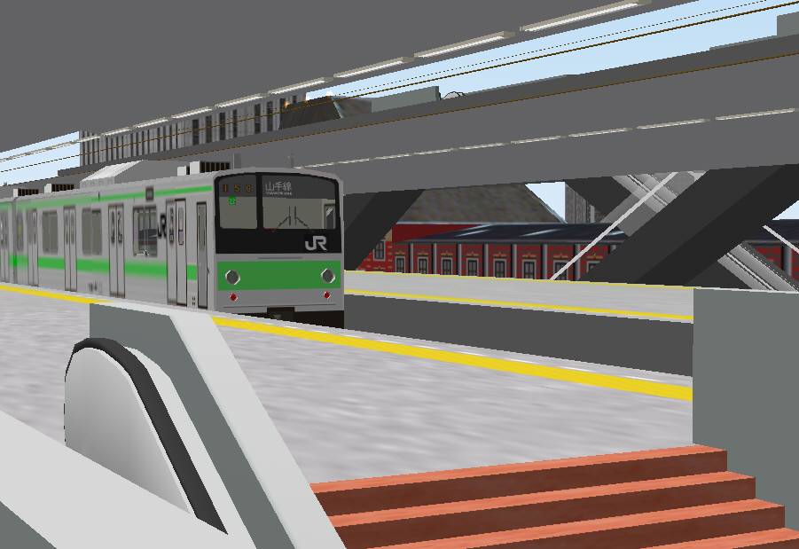 This is Yamanote-line train cars, stairs, escalators (animated), and fluorescent lights.
