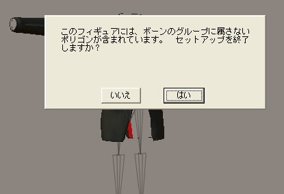 Metasequoia のIDを貰いましたので、早速 obj 形式でエクスポートして、Poser に入れてみました。ここまではすんなりOKです。さて問題のボーン構造。マニュアル見てもわからなかったのでいろいろいじってからもう一回マニュアルを読み返して見ると、少しだけわかりました。要するに手順は、