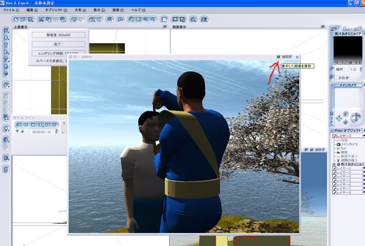 PoserからVueへアニメーションをインポートして、いろいろ設定してアニメーションレンダリングまで行ったのは良いのですが、13時間かけてレンダリングした後で、いろいろごねてきてまともにセーブできません。