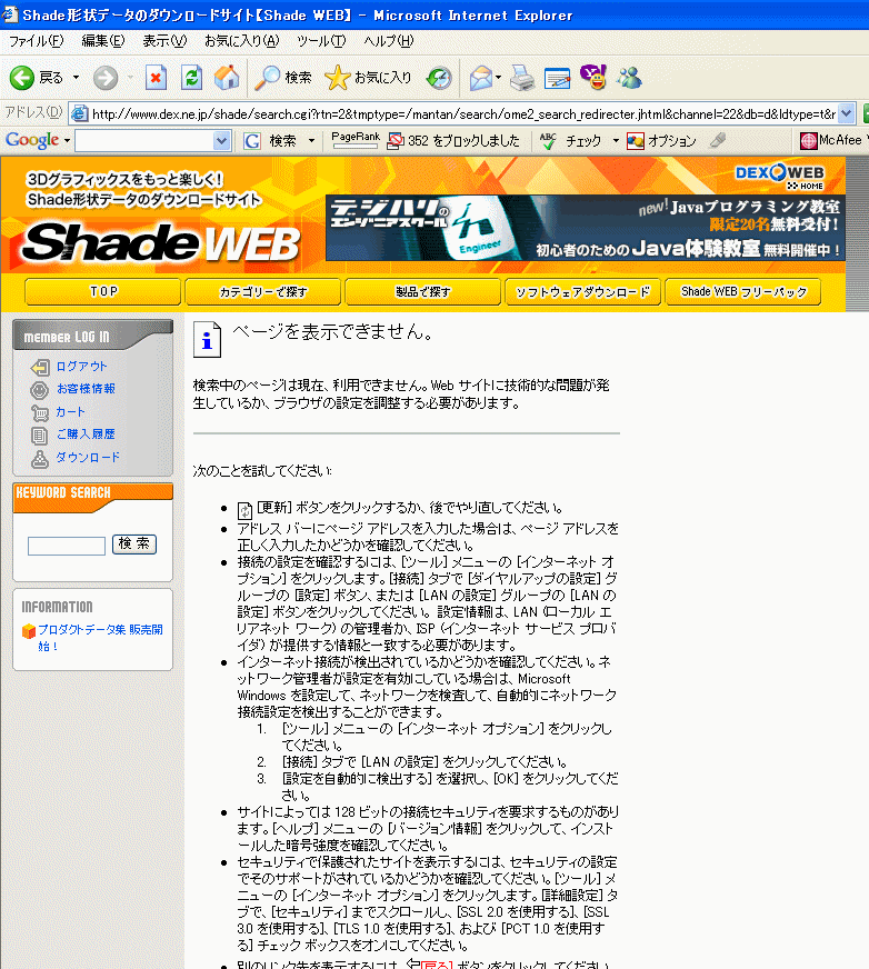 Shade WEB フリーパックに入会したのですが、サーバーのレスポンスが遅い上に、頻繁にダウンロードのページがダウンして、全く使い物になりません。サーバー会社には既に文句を言いましたが、次のように検討下さい。相変わらず御社はいろいろありますね。