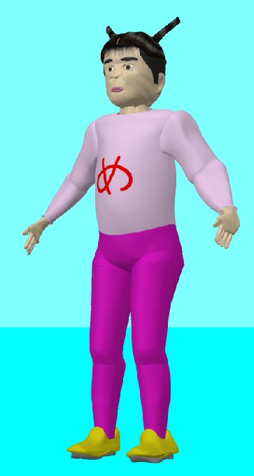 左が全身像。右が顔のアップ。8月20日のメタセコイア版と微妙に違いますが、唯一共通しているのがすごくキモいこと。これだけは直りません・・・やはり芸術的センスの問題か?いやいや第一作だから仕方ないということにしておこうか、やはり相変わらず、情けないです。