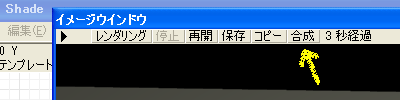 前に書いた7月30日の 「Shade の背景ウィンドウ」 についての疑問。やっと解けました。Shade の背景とは上半面・下半面毎に無限遠まで続くような設定になっていて、Poser で言うところの背景は、Shade では「合成」と言うのでした。この図のようにイメージウィンドウの「合成」を押すと、素直に普通の2Dの絵とレンダリング結果を合わせられます。とりあえずそれだけ。