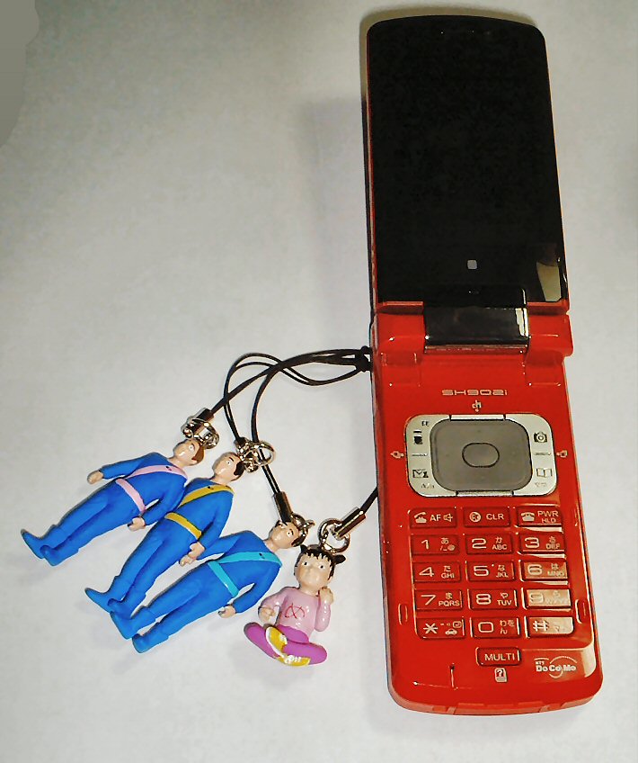 In the cartoon, "Being pleased Megu wearing Ringhills" "Scott, Virgil, and John of International Brushcut" are now released as a strap of cellular phone !