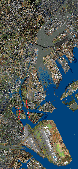海岸線・埋立地の島の数・建造物の位置寸法方角がかなり狂っている。都心部が約2倍にデフォルメされている。 衛星写真を使用して殆ど実際の座標に近く配置されている。 地図に基づいた座標に配置されている。